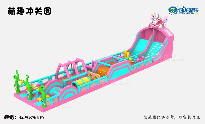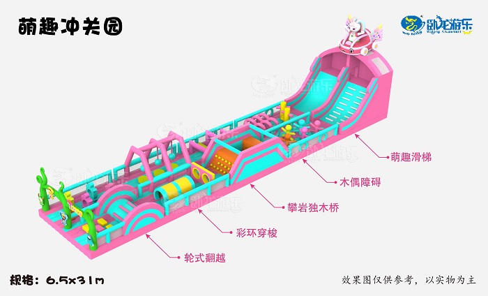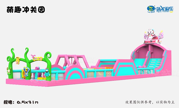 Designed like a fairy-tale candy world, this inflatable obstacle course integrates various interesting projects such as slides, puppet obstacles, and rock-climbing wooden bridges. It aims to inspire children’s spirit of exploration and courage, becoming a happy companion on their growth journey.