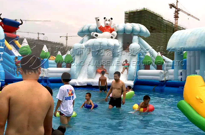 If the mobile water park had equipment like an "Ice and Snow World" water play area, it can be converted into an ocean ball park. Alternatively, you can fill it with sand to create a sandpit park. When winter comes, you can even turn it into a real ice and snow park by adding snow and ice elements.