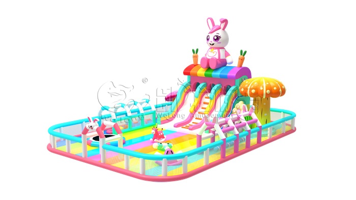 What makes the Cute Rabbit Water Bed Park stand out from traditional amusement facilities is its core attraction: the water bed with a soft, cloud-like texture. Unlike conventional air cushions, the water-filled mattress delivers a gentle coolness that spreads from the soles of the feet to the entire body, making visitors feel as if they are stepping into a clear stream on a hot day. The park’s design is a feast for the eyes—life-sized cute rabbit sculptures perch on the water beds, as if welcoming little guests, while colorful mushrooms and blooming flower decorations flank the slides, creating a dreamy fairy-tale atmosphere that sparks children’s imagination.